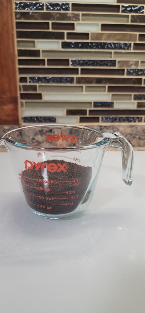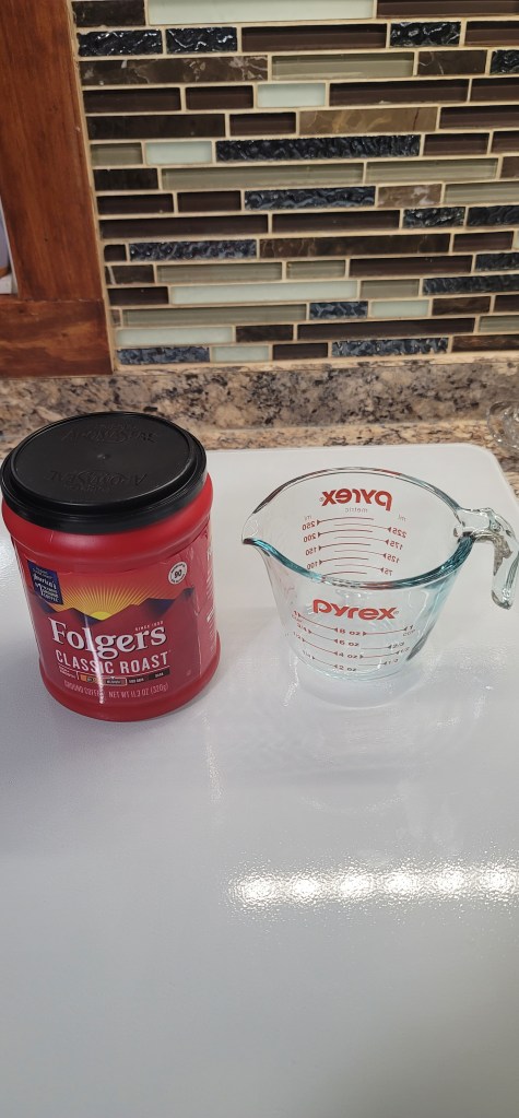 Up next you can choose whatever ground coffee you like. I used the Folgers Medium Roast and added roughly a 1/2 cup of ground coffee into the french press.