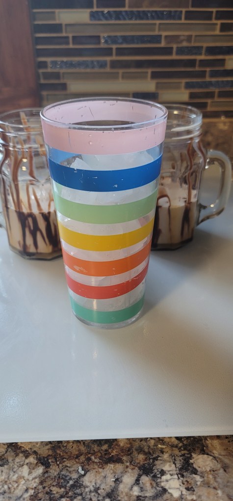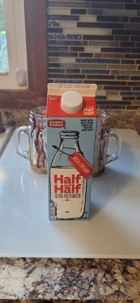Now it is time to add whatever type of milk you prefer. I was trying to finish up some half and half, so I used that for today.