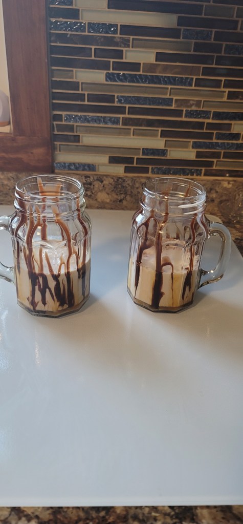 To be a little extra on this Sunday morning, I decided to also add some chocolate syrup because who doesn’t love chocolate?!