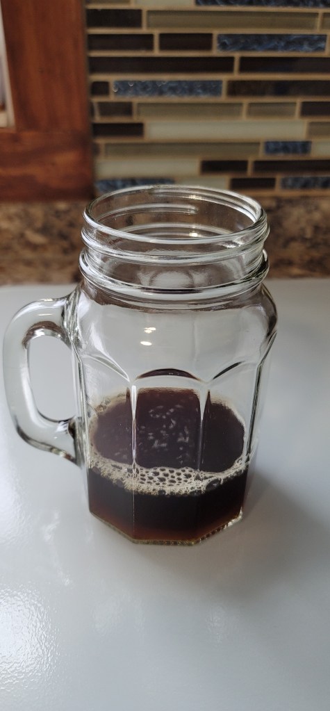 Up first I brewed around 2 oz of coffee. You can do this any way that you like to make coffee. If you think that you are going to want a second cup, make some extra! Grab a mug and pour your coffee in first.