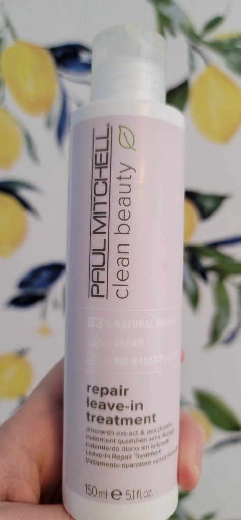 The next product is from Paul Mitchell and it’s called the “repair leave-in treatment”. This product is designed to help restore your hair’s health. I usually add a little bit of this to the areas of my hair that are more damaged and specifically towards the ends. A little bit of this product goes an extremely long way.