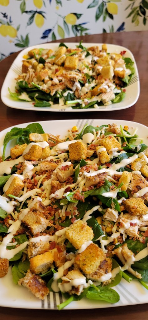 Happy Mom Monday to my beautiful friends! I hope you guys have an amazing start to your week! I know as busy parents sometimes we just want a quick meal that is not only delicious, but quick to make as well. So, I thought for today’s post that I would share a yummy recipe that is easy to make and not super involved. Pretty much everyone who knows me well enough knows that I live for a good salad. When I was younger, I hated salads. What the heck was wrong with me? Now I love them, and I could literally eat a huge, yummy salad multiple times a week! Let’s jump into the recipe!