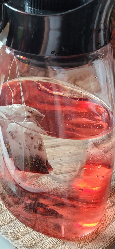 Step 2: Once the tea is done, grab a cup and fill it with ice and add in your passion tea from the pitcher. I fill my glass a little more than halfway up with the tea.