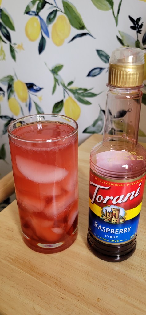 Step 4: Sweeten with any type of syrup that you enjoy. I usually add a few pumps of the Torani raspberry syrup.